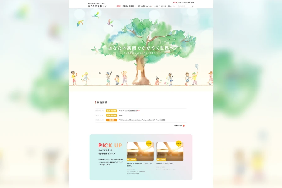 2023年に「希少疾患とともに歩むみんなの情報サイト(以下、情報サイト、https://www.medipal.co.jp/rare-disease/)」を開設しました。「あなたの笑顔でかがやく世界へ」をテーマに、希少疾患の患者さんとそのご家族の笑顔のための情報を発信しています。