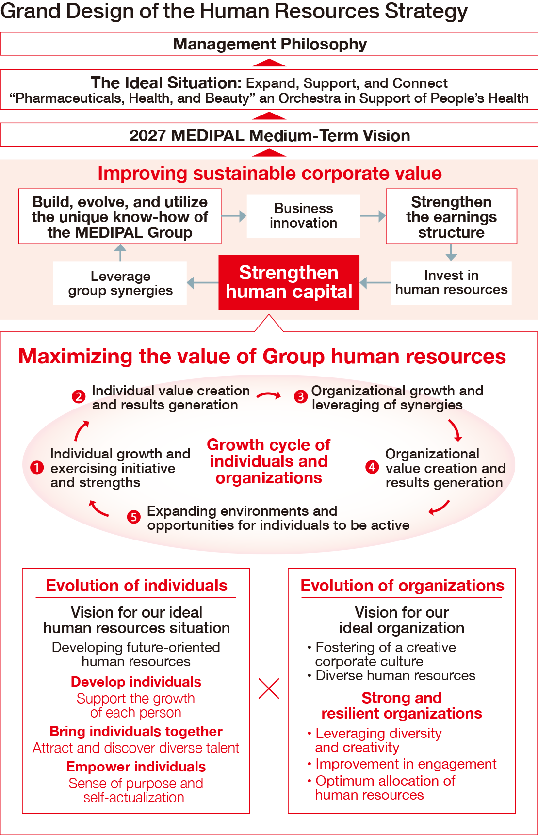 Specifically, we have defined the ideal situation for both our organization and our human resources and are developing a human resources management program to build the ideal human resources portfolio to achieve our ideal situation. Through this, the MEDIPAL Group intends to continue to contribute to people’s health and the advancement of society by being proactive and constantly evolving, no matter the changes in the operating environment.