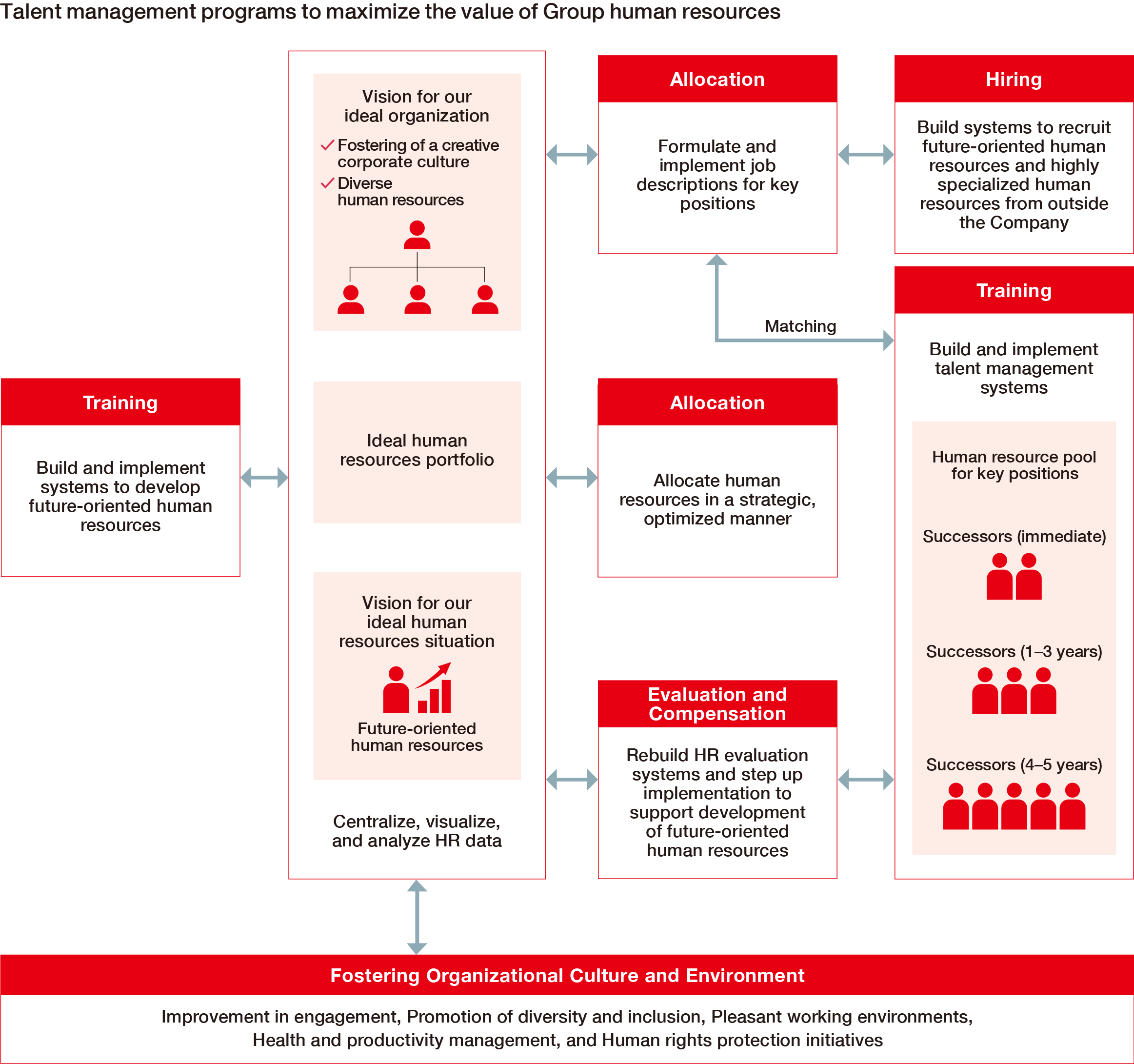 We will focus especially on the systematic, strategic, and sustained development through talent reviews and successor development plans for next generation management human resources and talent holding key positions, fostering core capabilities to support the growth strategy of the Group.